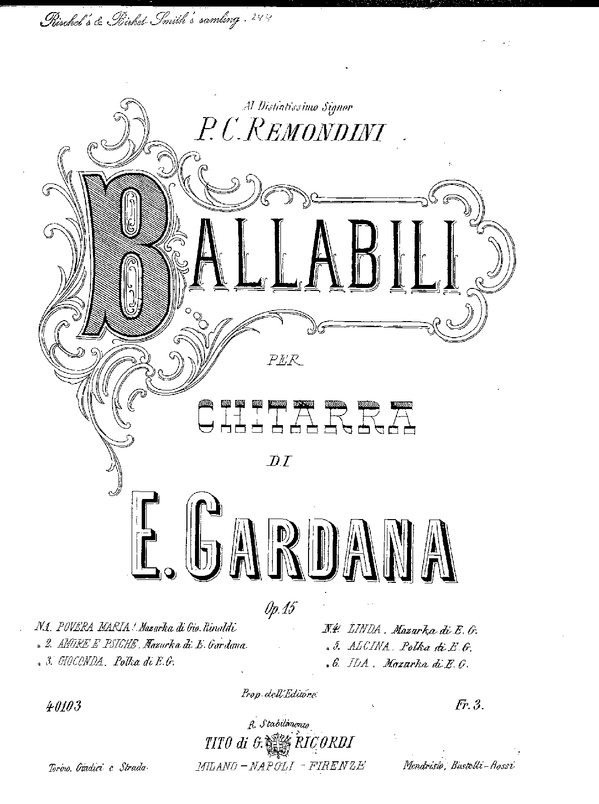 | Dedication | Al Distintissimo Signor P. C. Remondini (possibly Pier Constantino Remondini, 1830-1893...) |