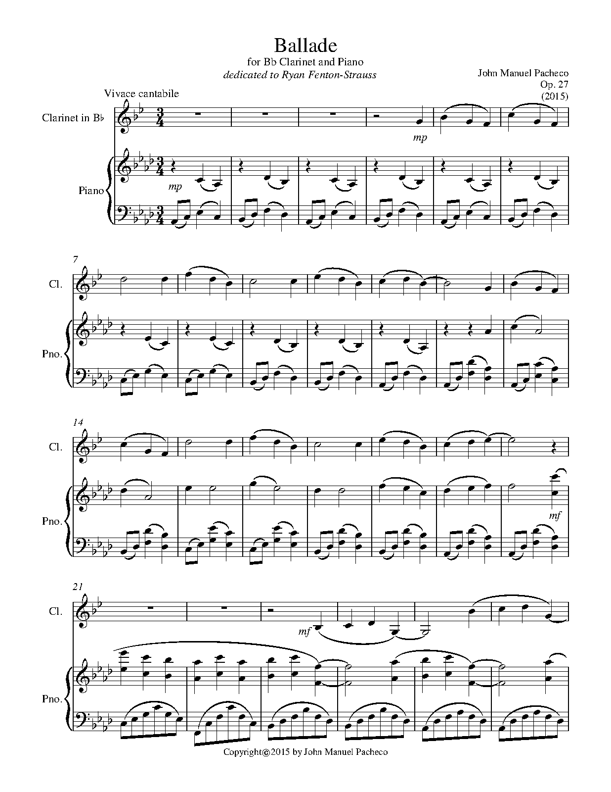 | Genre Categories | Ballades; For clarinet, piano; Scores featuring the clarinet; |