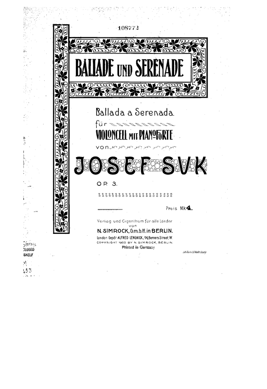 | Genre Categories | Ballades; Serenades; For cello, piano; |