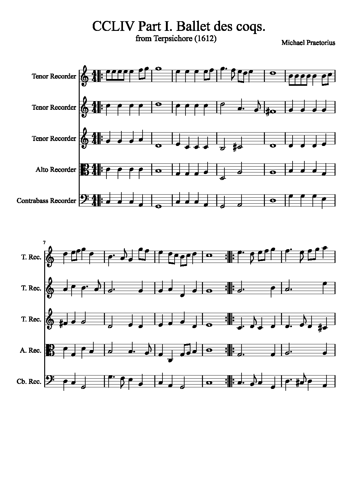 | Extra Information | These pieces were assembled and arranged by Praetorius for his 1612 collection. It is unknown how many, or if any, of the works in the collection were actually composed by Praetorius as opposed to being popular dance tunes arranged by him. The instrumentation is not specified in the original, and simply listed as "à 5". |