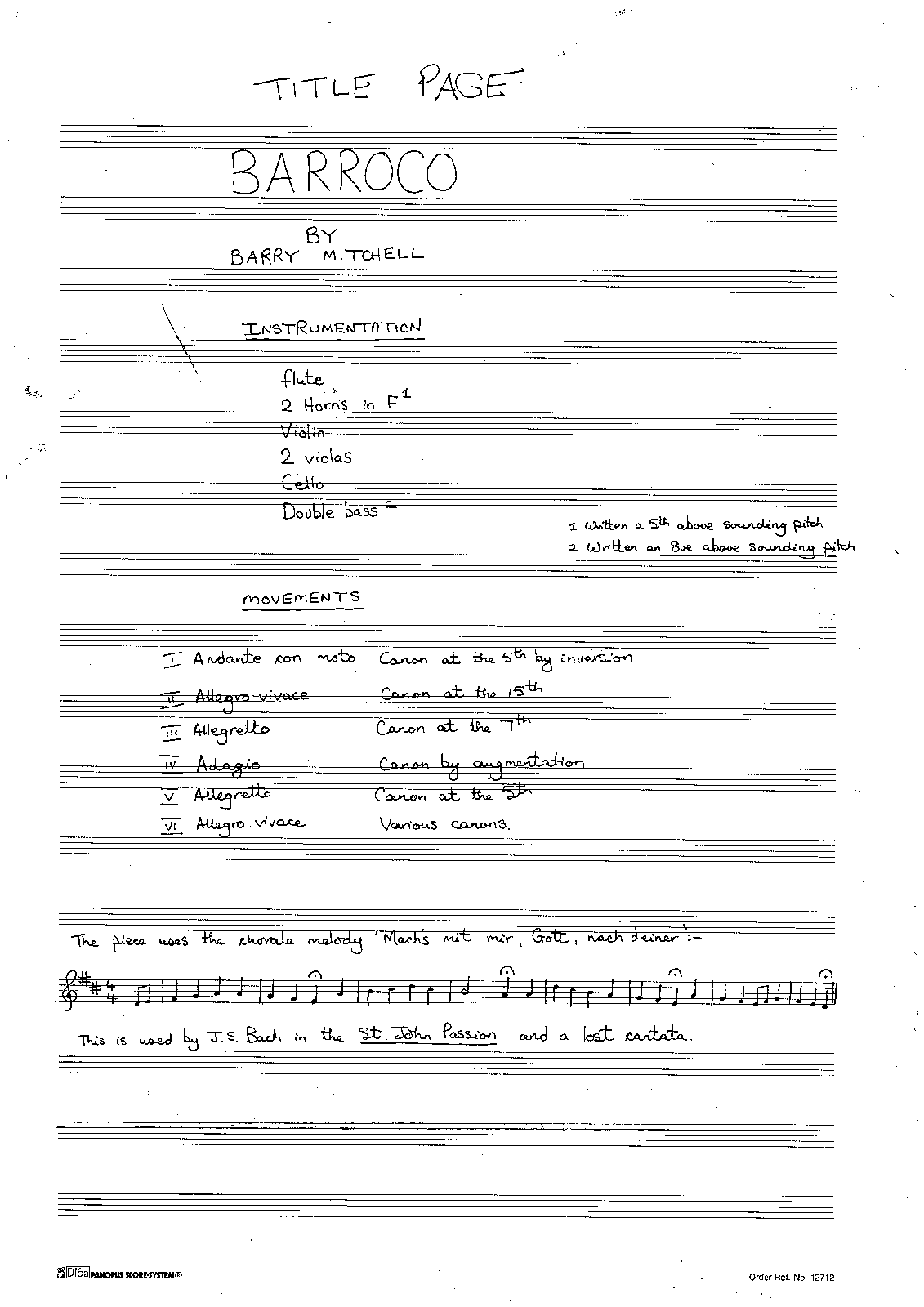 | Movements/SectionsMov'ts/Sec's | 6 movements (canons) |