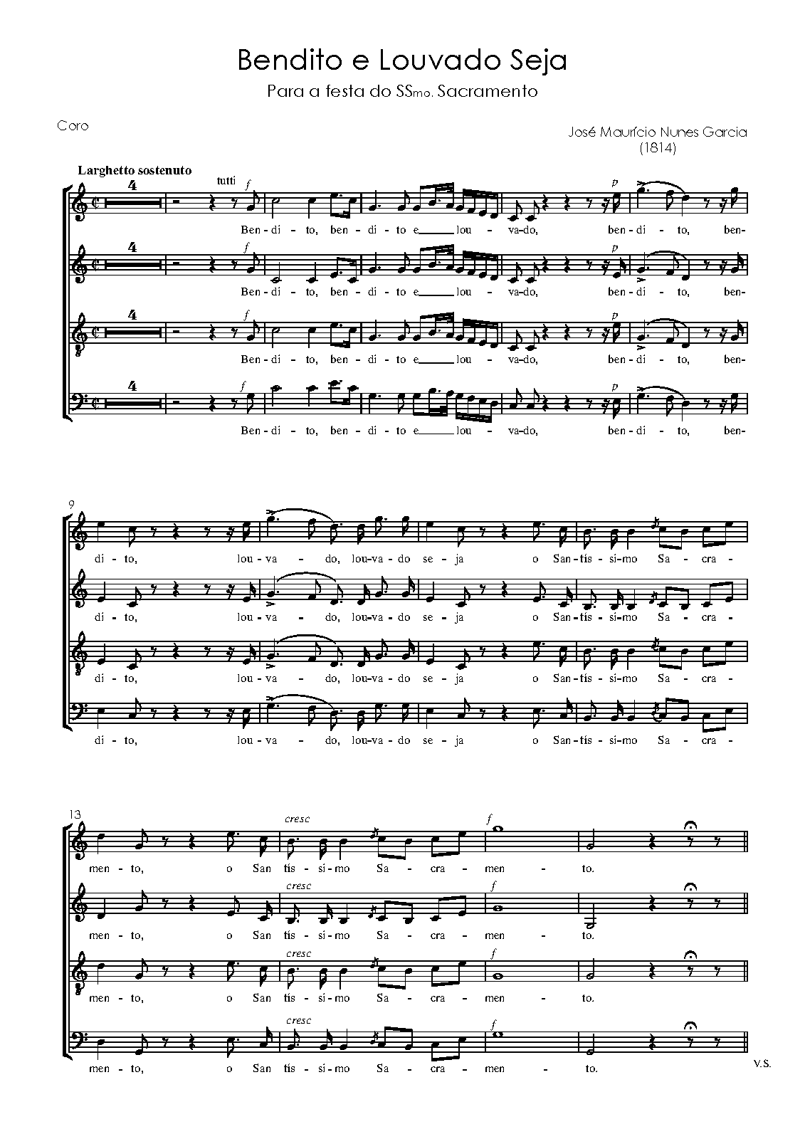 Alternative. Title Bemdito, e louvado seja o SS.mo Sacramento