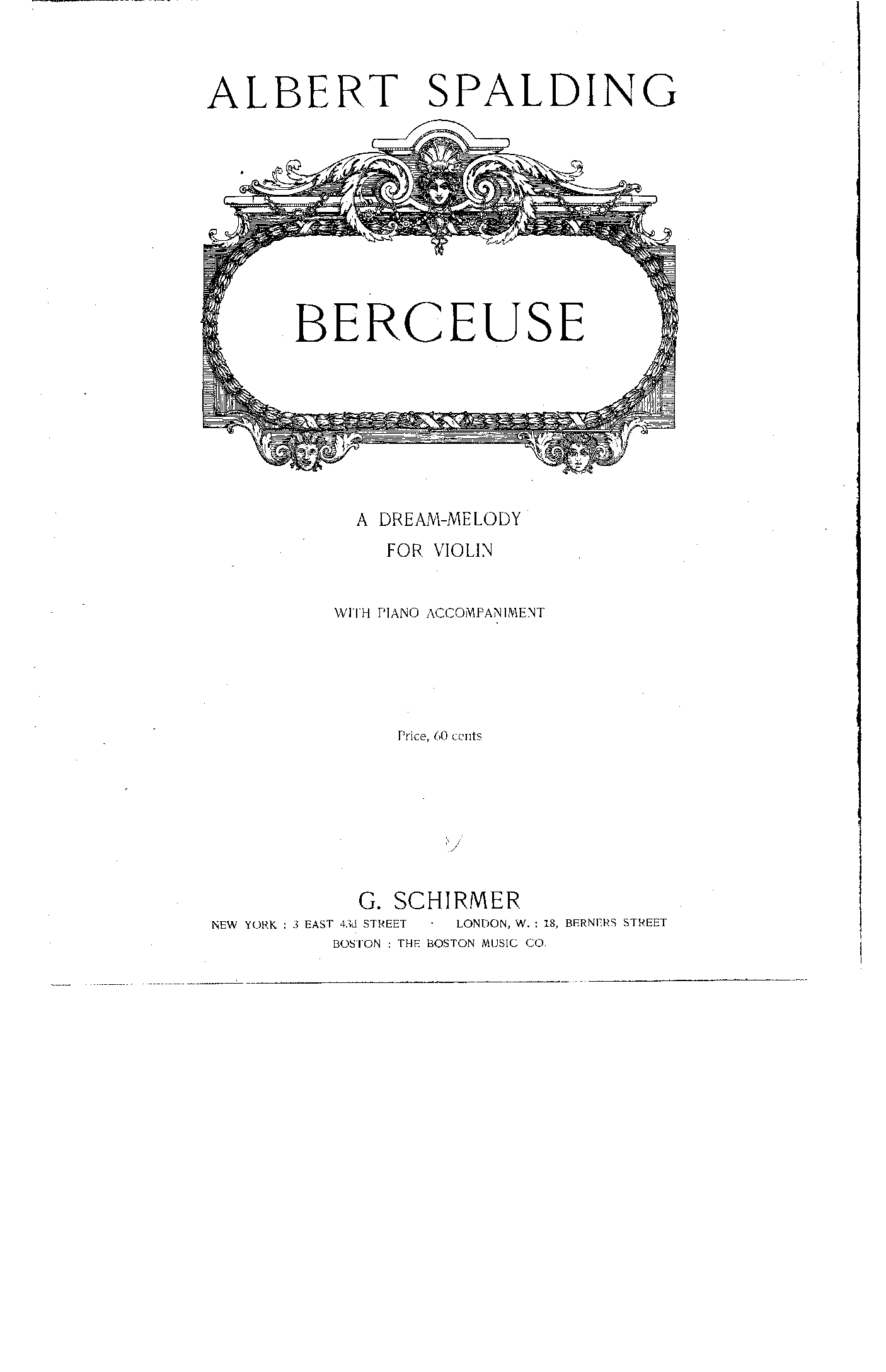 | Genre Categories | Berceuses; For violin, piano; Scores featuring the violin; |