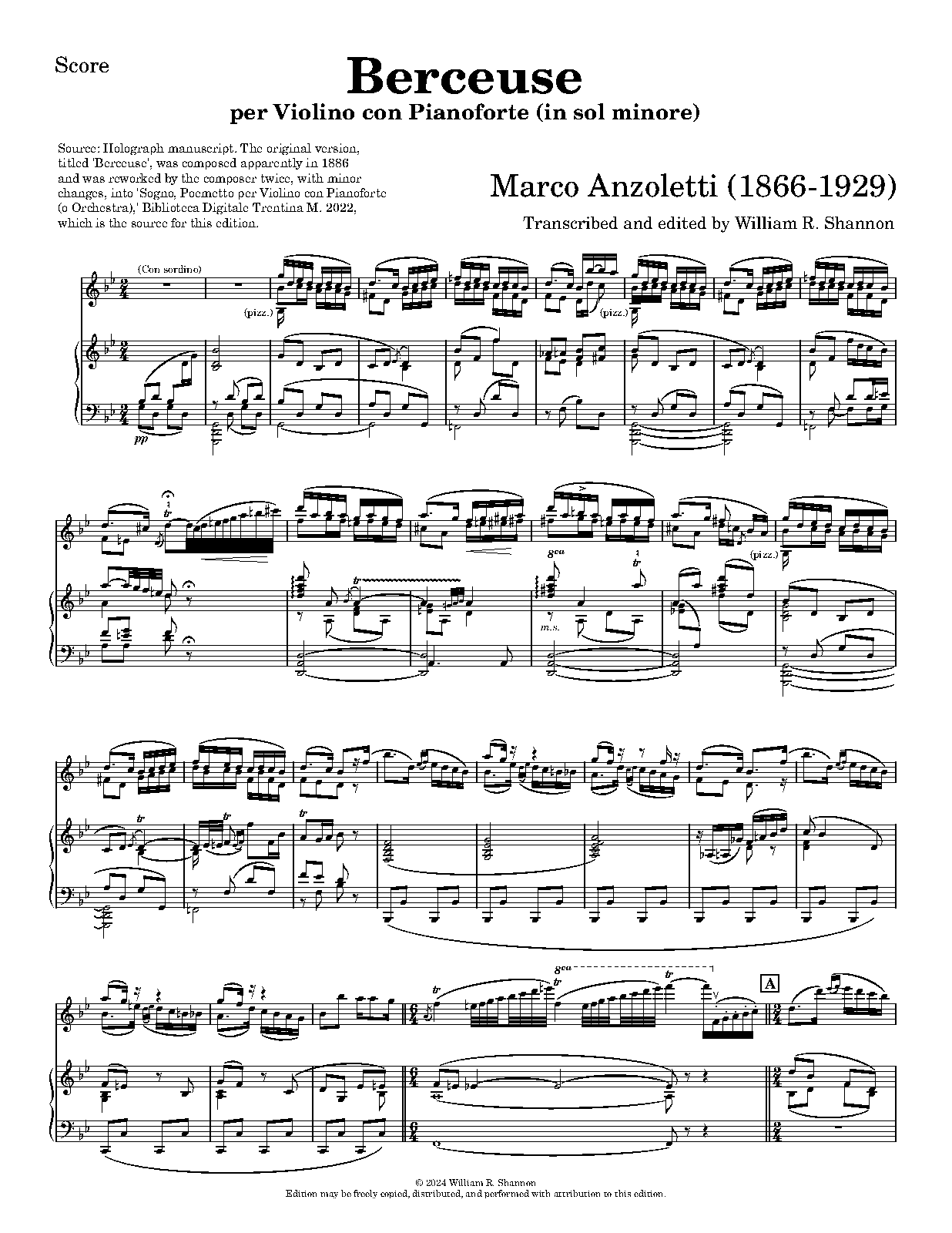 | Work Title | Berceuse for Violin and Piano in G Minor |