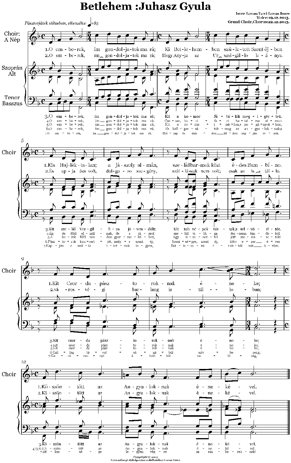 | Work Title | A jászol almán kis hajléktalan,szelíd barmok közt édes Bambíno |
