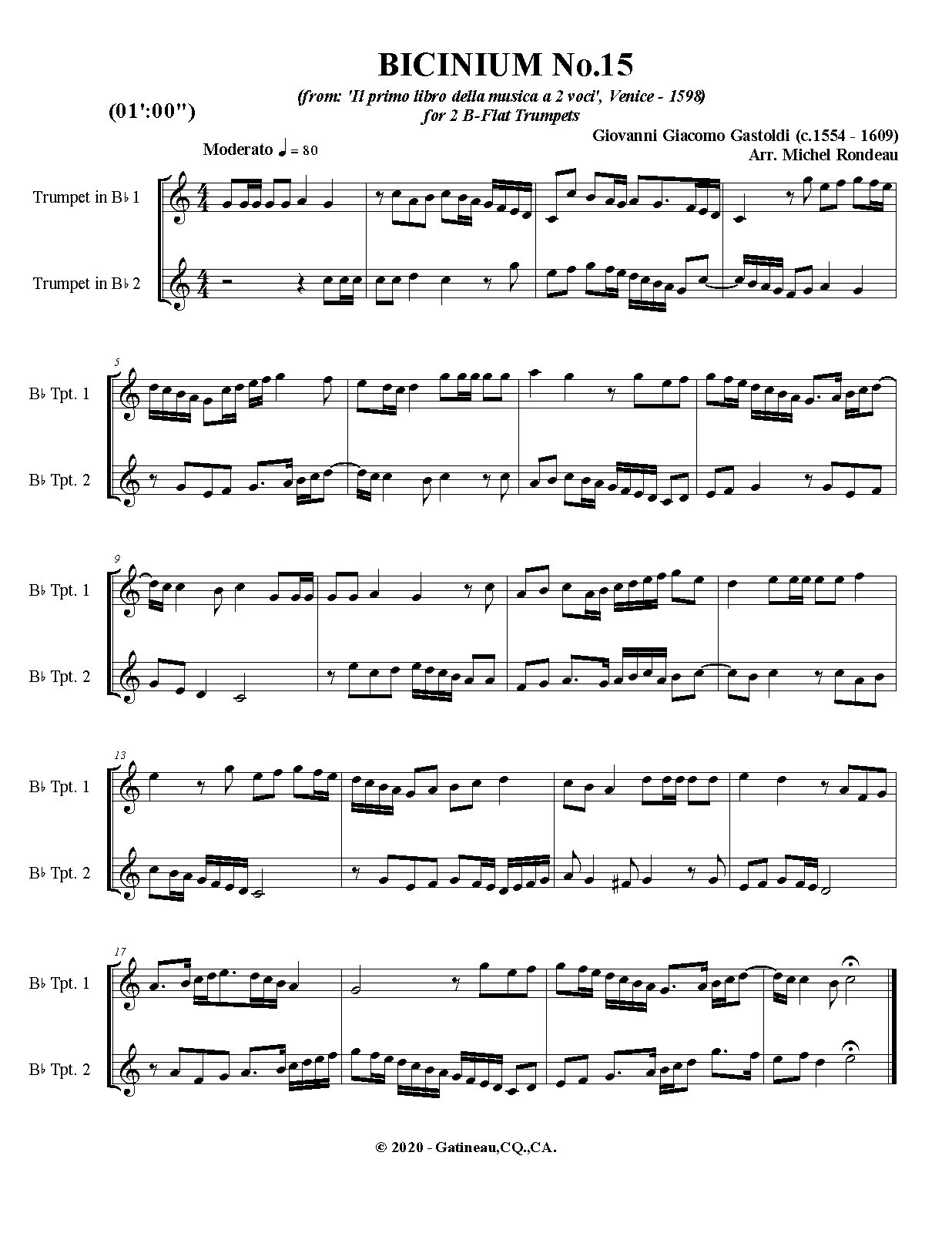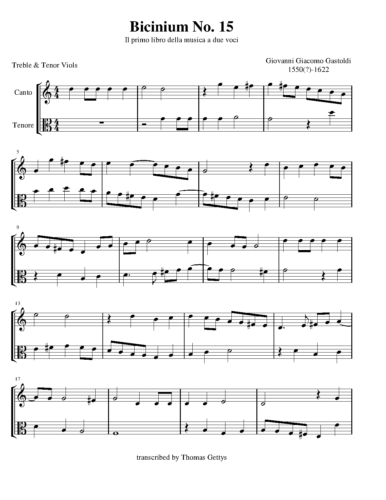 | First Publication | 1598 in Il primo libro della musica a due voci (No.15) |