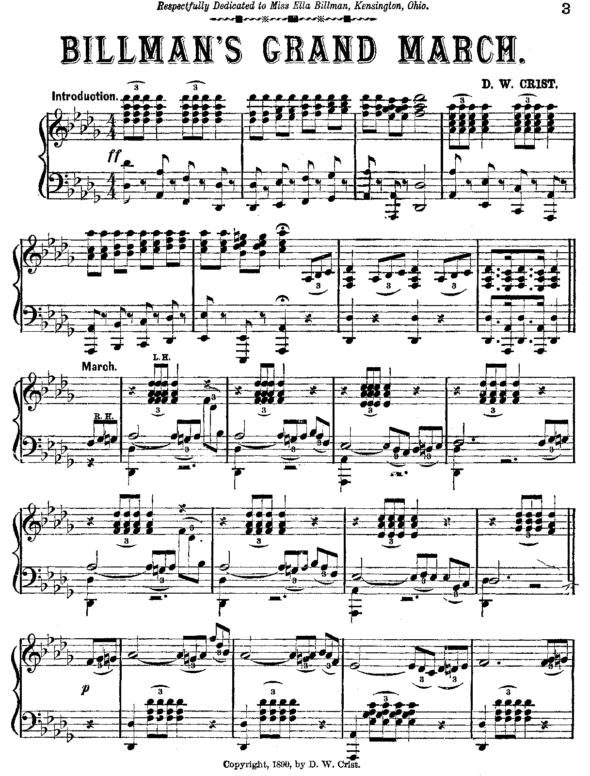 | Dedication | Miss Ella Billman, Kensington, Ohio |