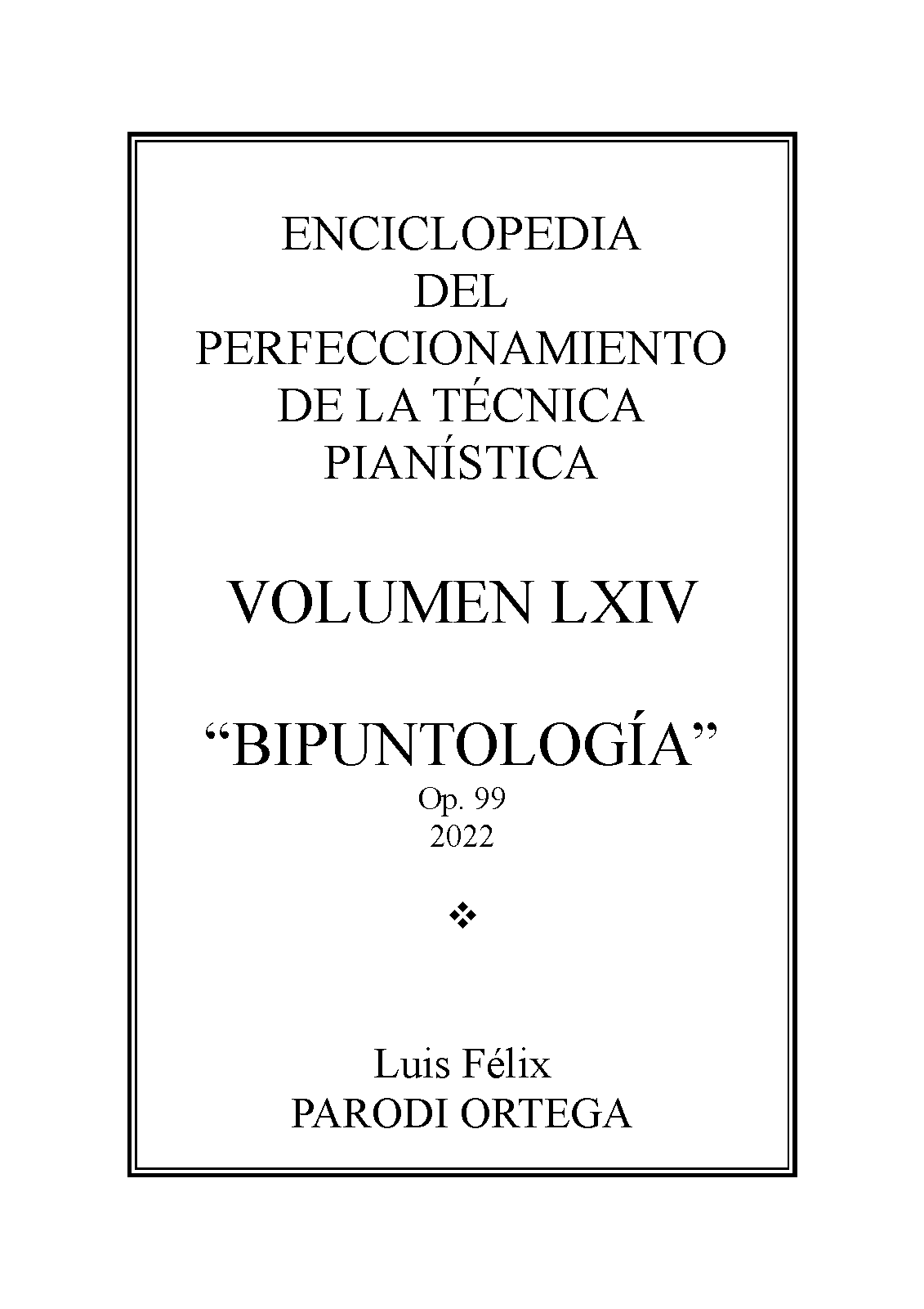 | Extra Information | Bipuntología, Op.99, is the 64th volume of Enciclopedia del Perfeccionamento de la Técnica Pianística. |