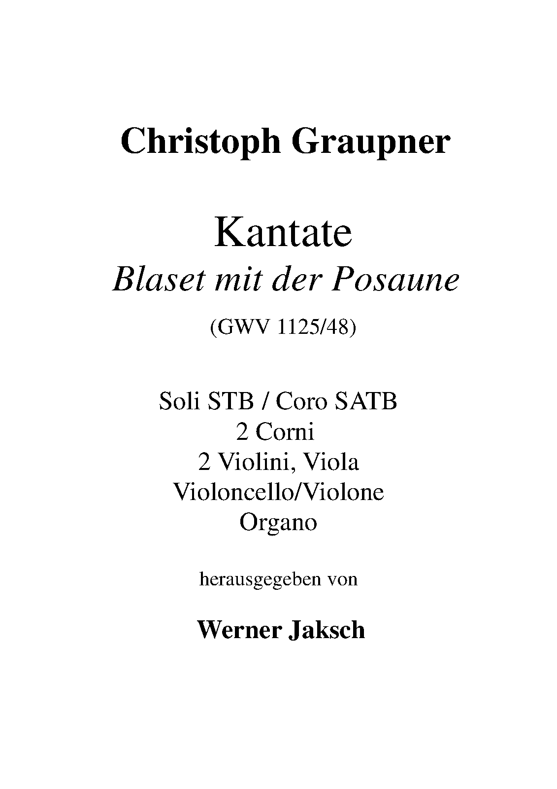 | Instrumentation | soprano, alto, tenor, bass; 2 horns, strings, continuo |