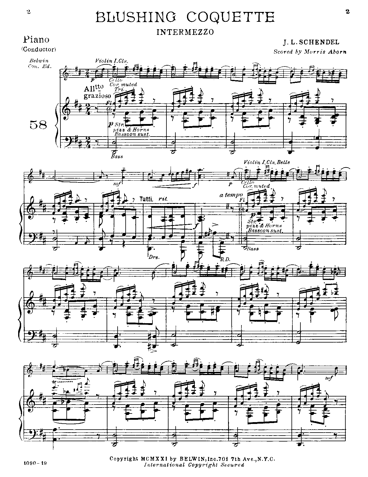 Belwin Concert Edition, No.58 New York: Belwin, Inc., 1921. Plate 1090.