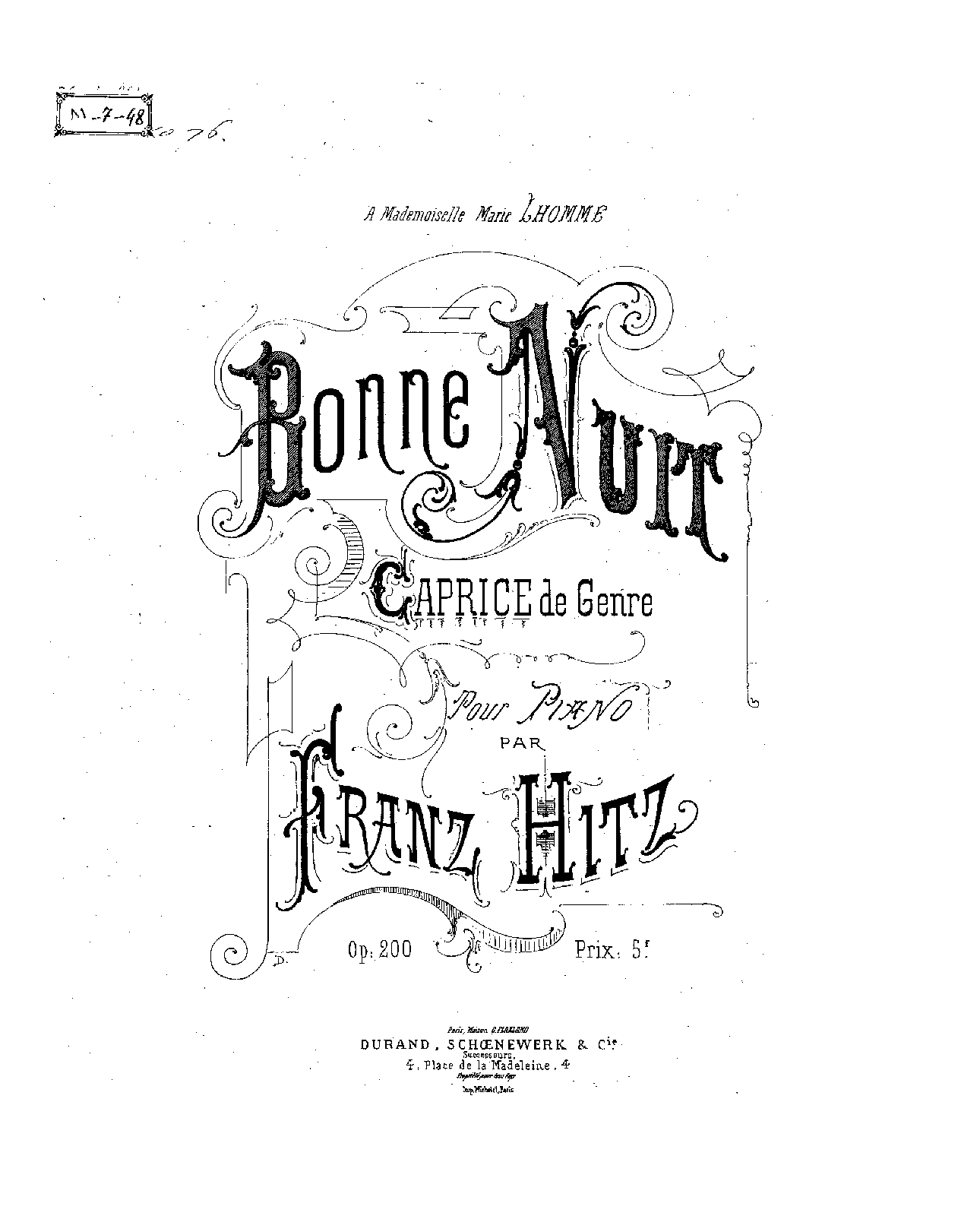 | First Publication | 1875? – Paris: Durand, Schoenewerk et Cie. |