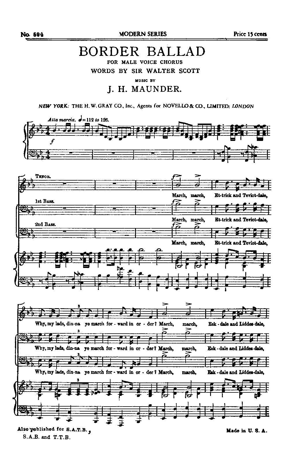 | Genre Categories | Ballads; For male chorus, piano; Scores featuring male chorus; |