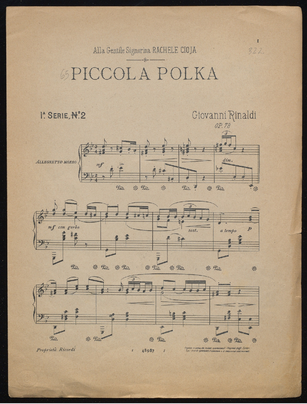 | Dedication | Alla gentile Signorina Rachele Cioja |
