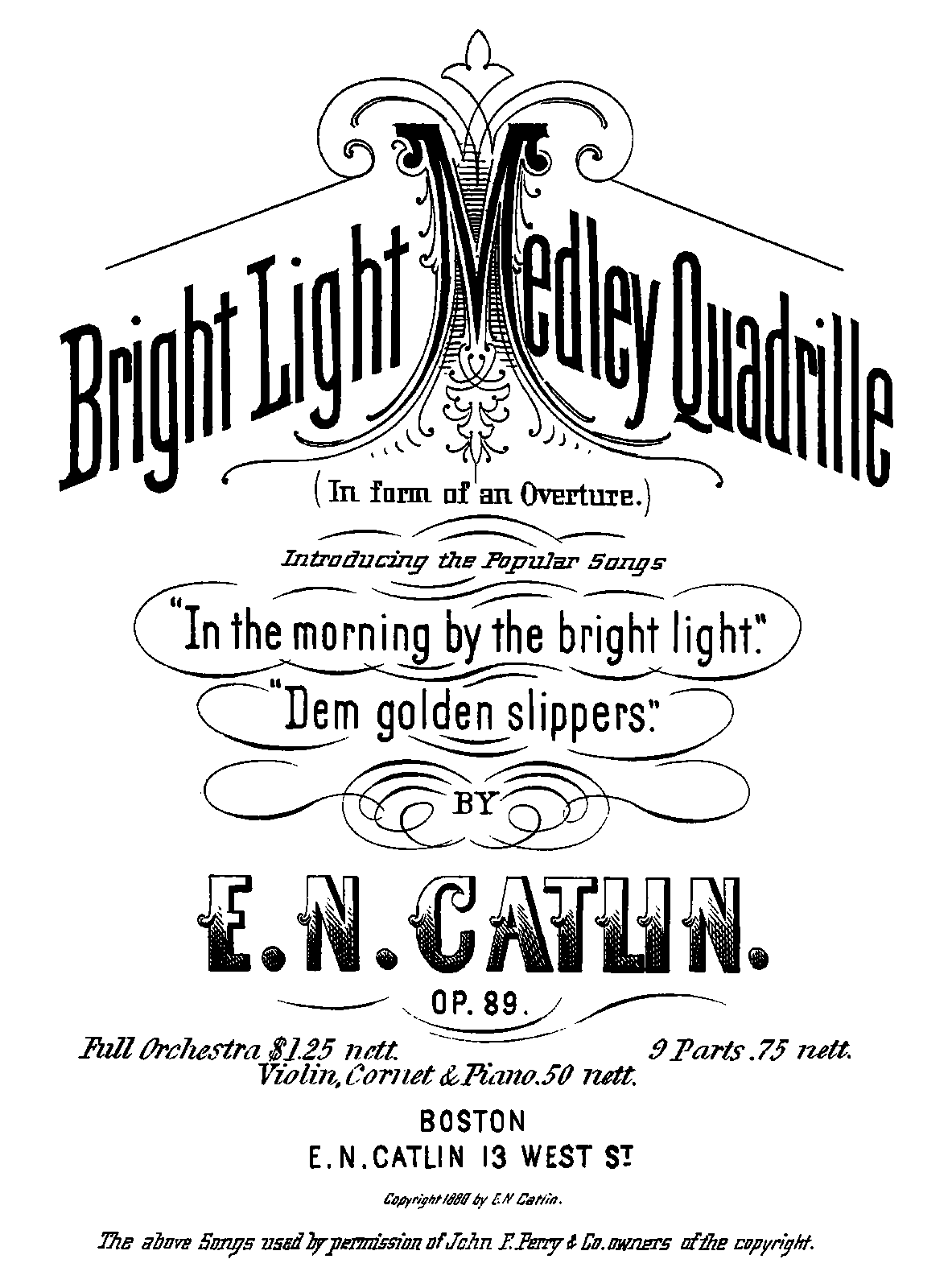 | Alternative. Title | In the form of an Overture. Introducing the Popular Songs "In the morning by the bright light." "Dem golden slippers." |