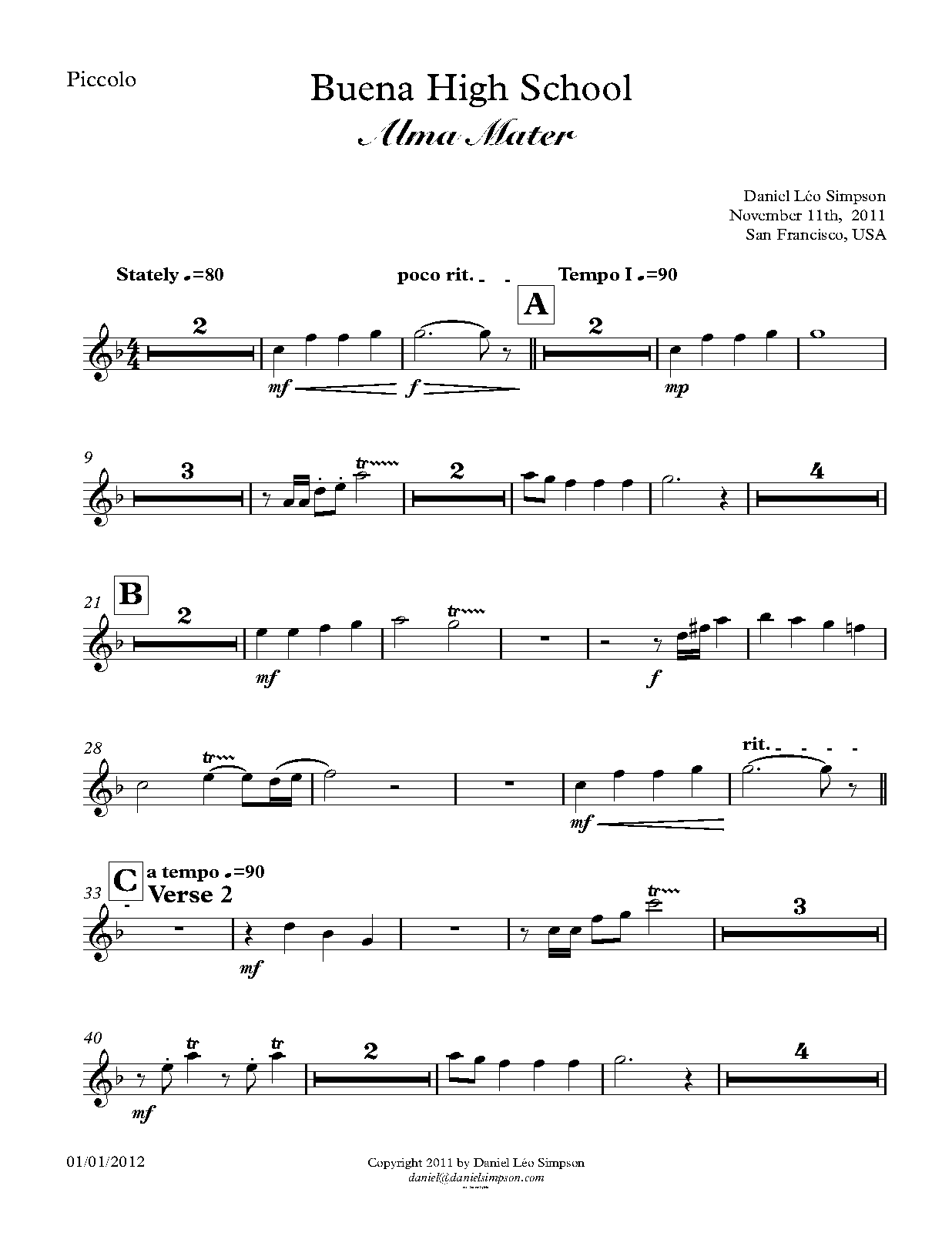 ⇒ 9 more: Oboe • Clarinets 1, 2, 3, Bass Clarinet (B♭) • Bassoon • Alto Saxes 1, 2, Tenor Sax, Baritone Sax • Trumpets 1, 2, 3, (B♭) • Horn 1, 2, (F) • Trombones 1, 2, 3, Tuba • Baritone Horn • Percussion (Cymbals, Glockenspiel, Snare Drum, Bass Drum)