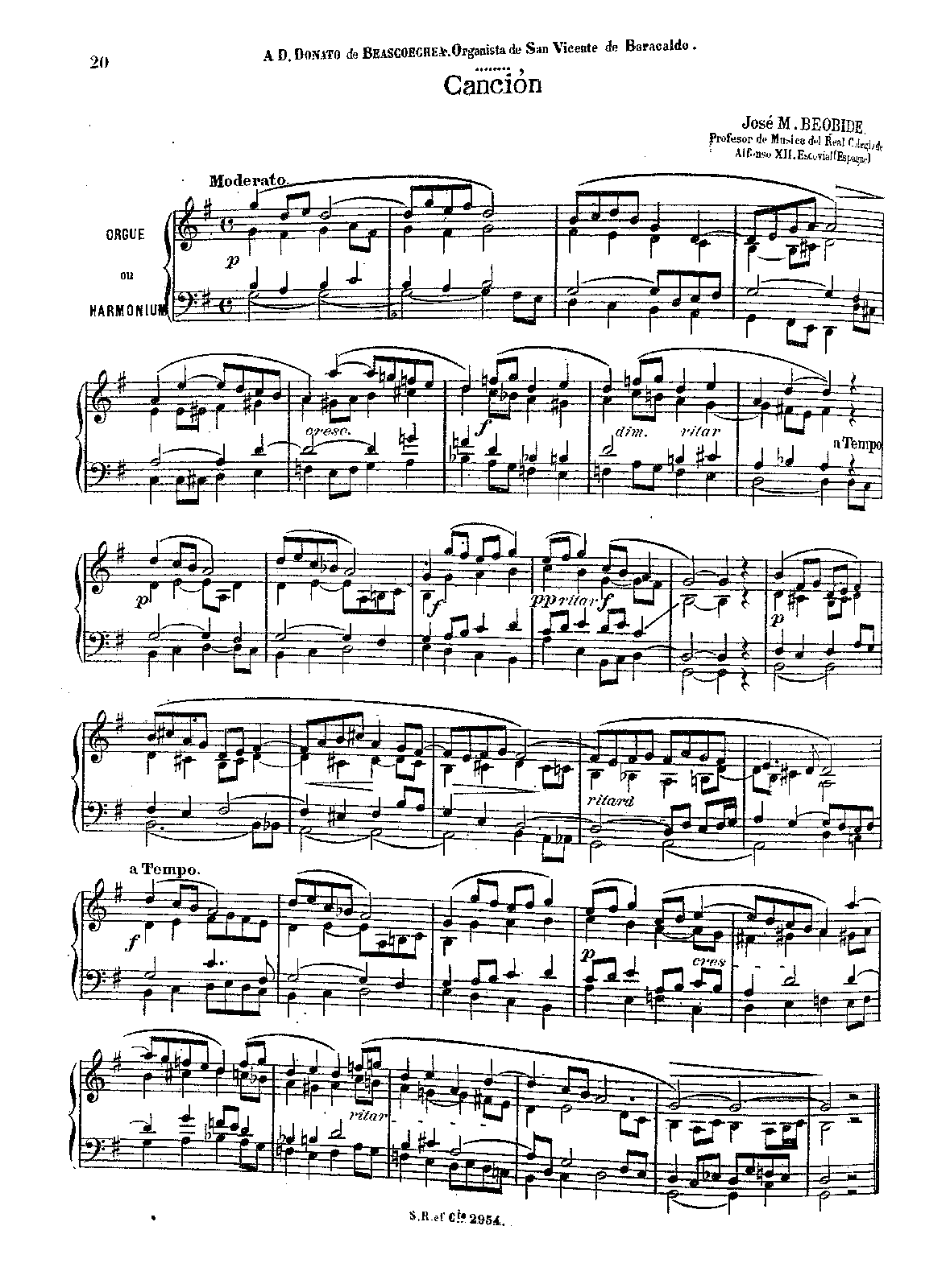 Dedication A D. Donato de Beascochea Organista de San Vicente de Baracaldo