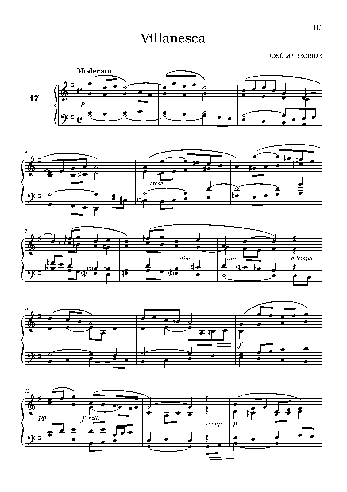 Misc. Notes Edition follows version published on "Tesoro Sacro Musical" (Sección Orgánica). Enero-Febrero 1950. Large parts of the harmonisation change, although the main theme follows almost note by note that of the "Canción" or the "Villanesca". This version was dedicated to Mr. "Juan Bosch Marín". NOTE: This work is missing in the index prepared by J. López-Calo (1983). I found it by chance when reviewing the Jan-Feb volume of 1950.