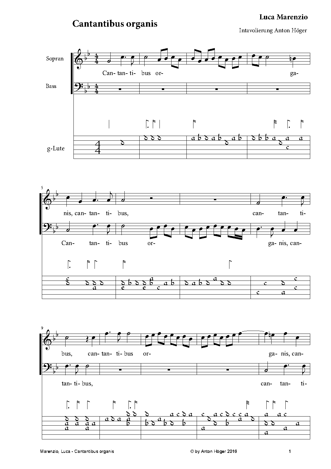 Intabulation in french Lute-tabulature for Soprano, Bass and g-Lute. If performed I would look forward about a small reference to my efforts.