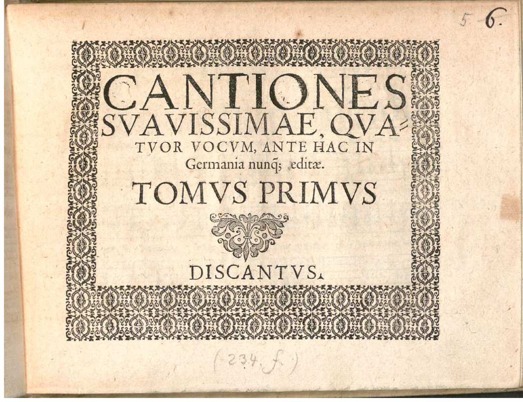 | Alternative. Title | Cantiones suavissimae quatuor vocum ante hac in Germania nunquam editae. |