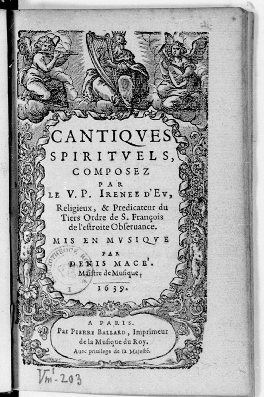 | Work Title | Cantiques spirituels à deux voix composez par le V. P. Irénée d'Eu... 2 parties séparées à la suite |