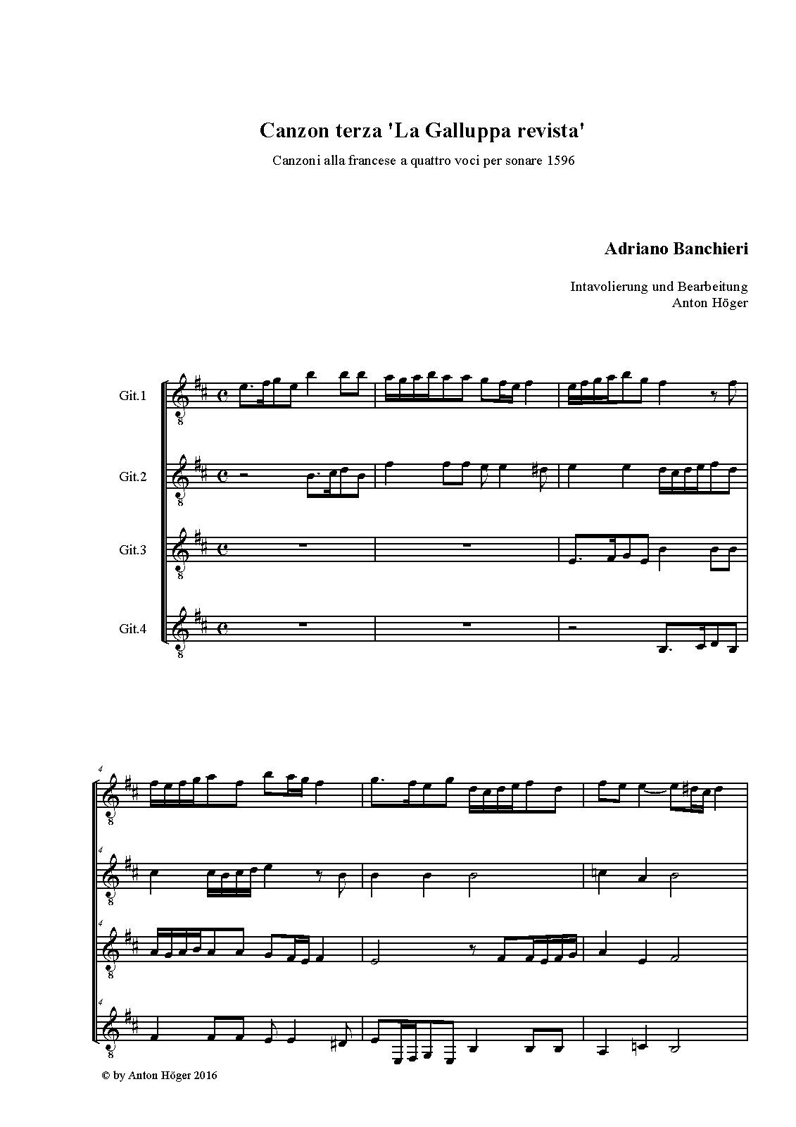 | First Publication | 1596 in Canzoni alla francese a quattro voci per sonare (No.3) |