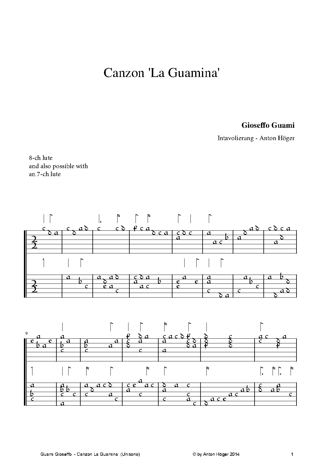 Misc. Notes Intabulation in French lute-tablature (Unisono). If performed I would look forward about a small reference to my efforts.