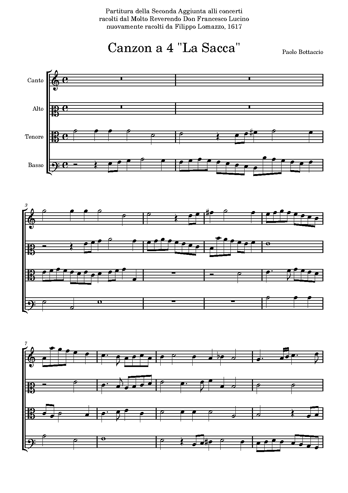 | Extra Information | dalla "Partitura della Seconda Aggiunta alli concerti racolti dal Molto Reverendo Don Francesco Lucino nuovamente racolti da Filippo Lomazzo, 1617" |