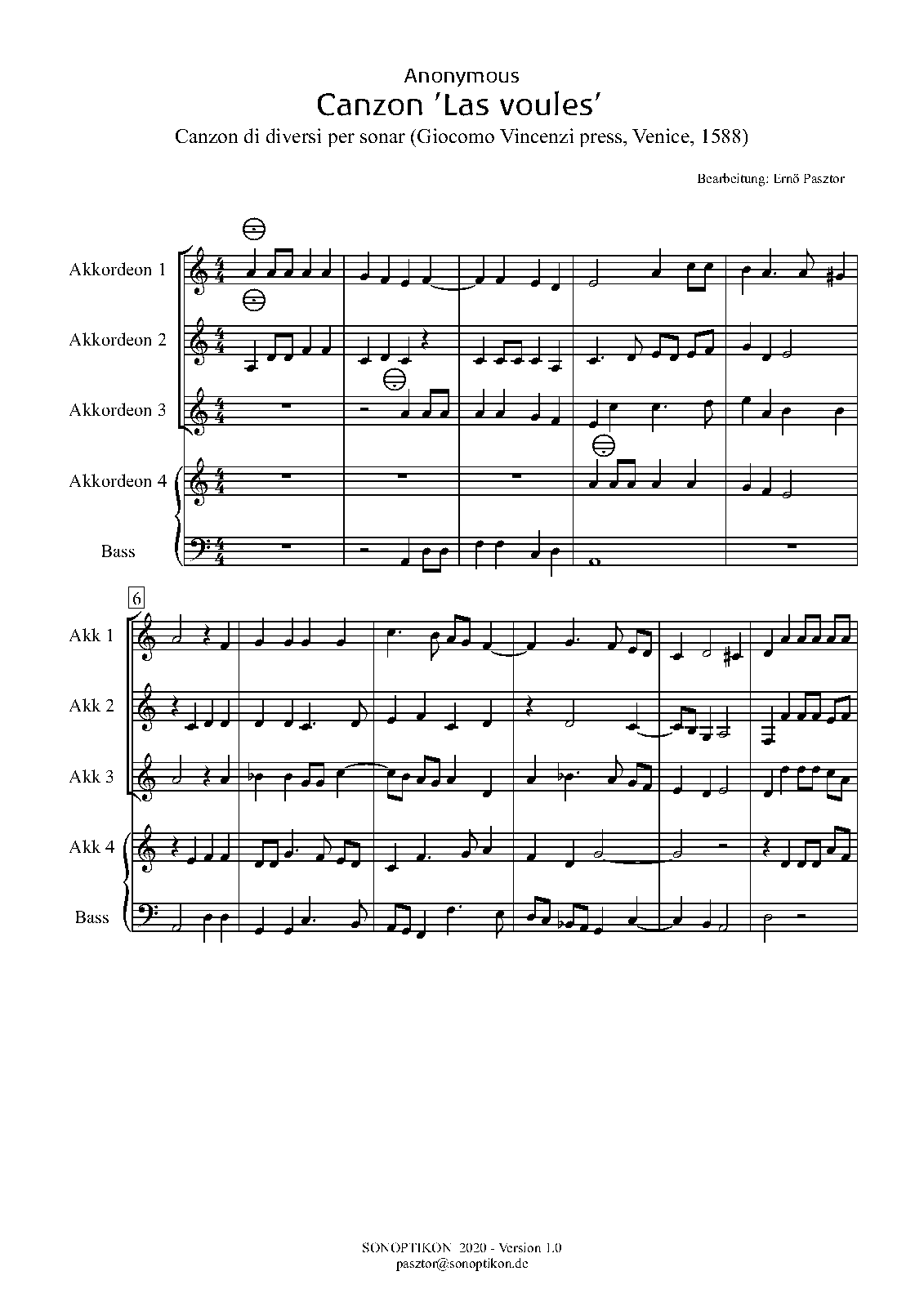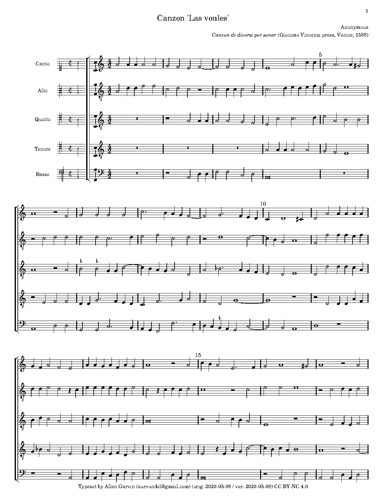 | First Publication | 1588 in Canzon di diversi per sonar (Venice: Giocomo Vincenzi press), no.5 |