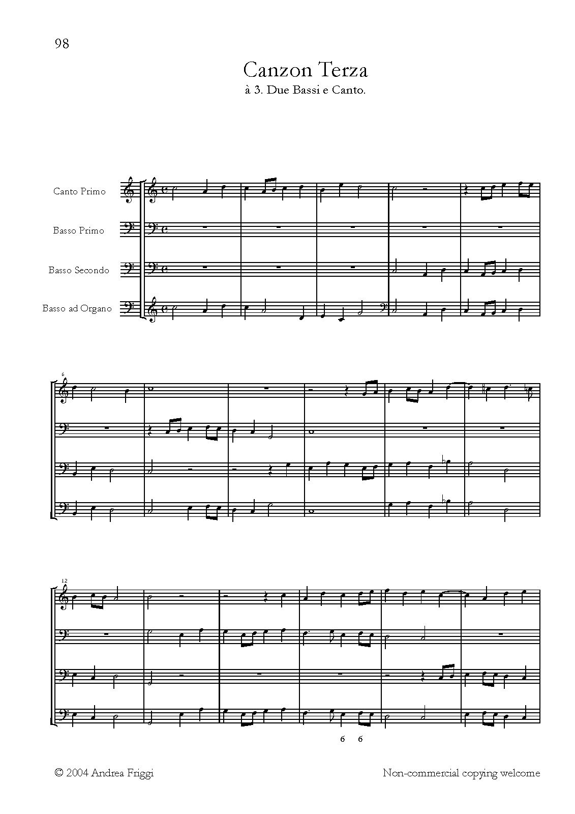 Alternative. Title Canzon terza à tre, due bassi e canto