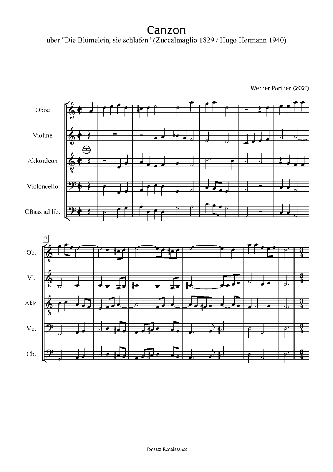 | Work Title | Canzon I (die Blümelein die schlafen) |