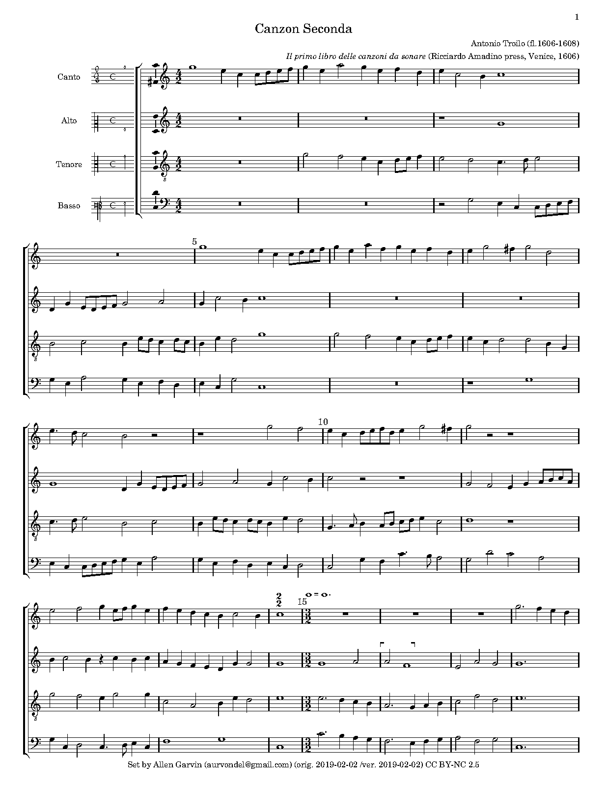 First Publication. 1606 in Il primo libro delle canzoni (Troilo, Antonio) (no.2)