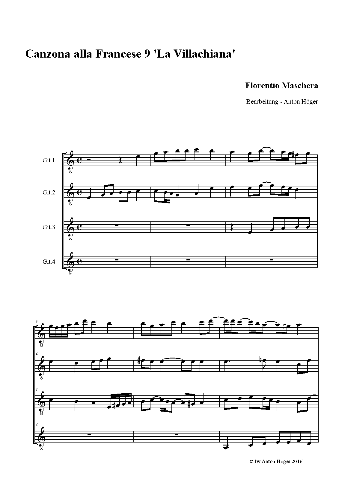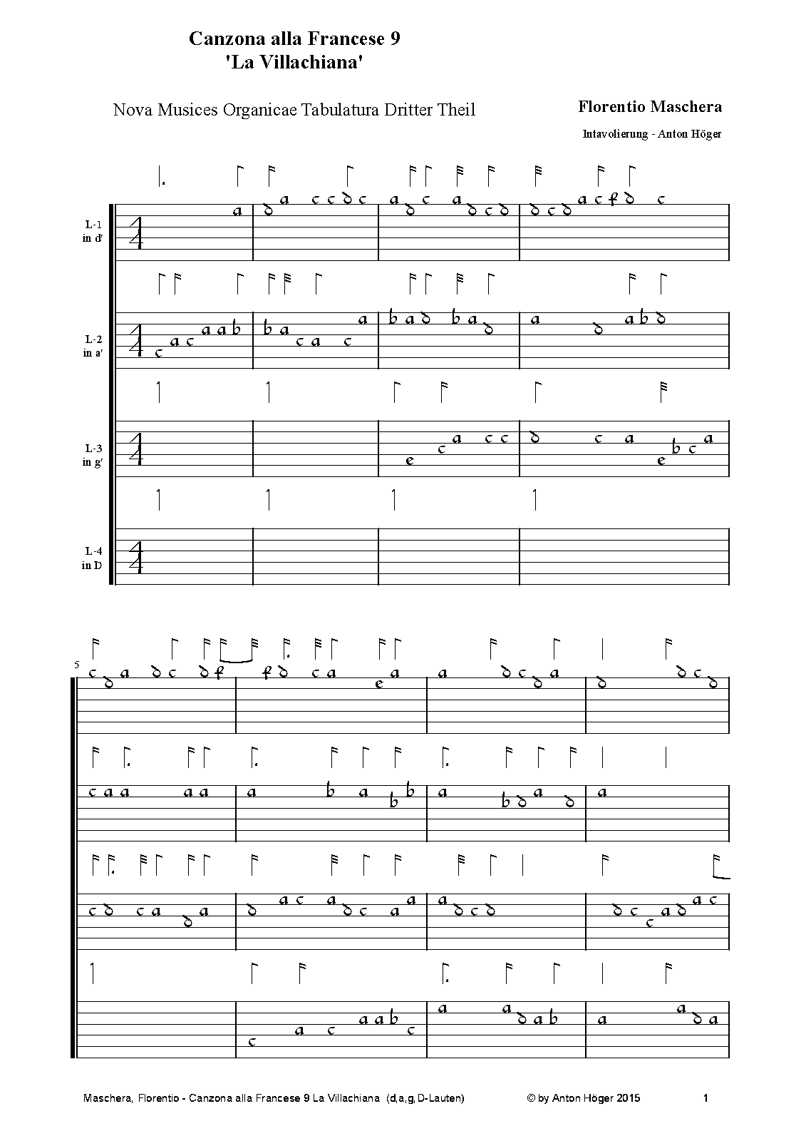 | Alternative. Title | Canzona alla Francese 9 'La Villachiana'- Nova Musices Organicae Tabulatura Dritter Theil |