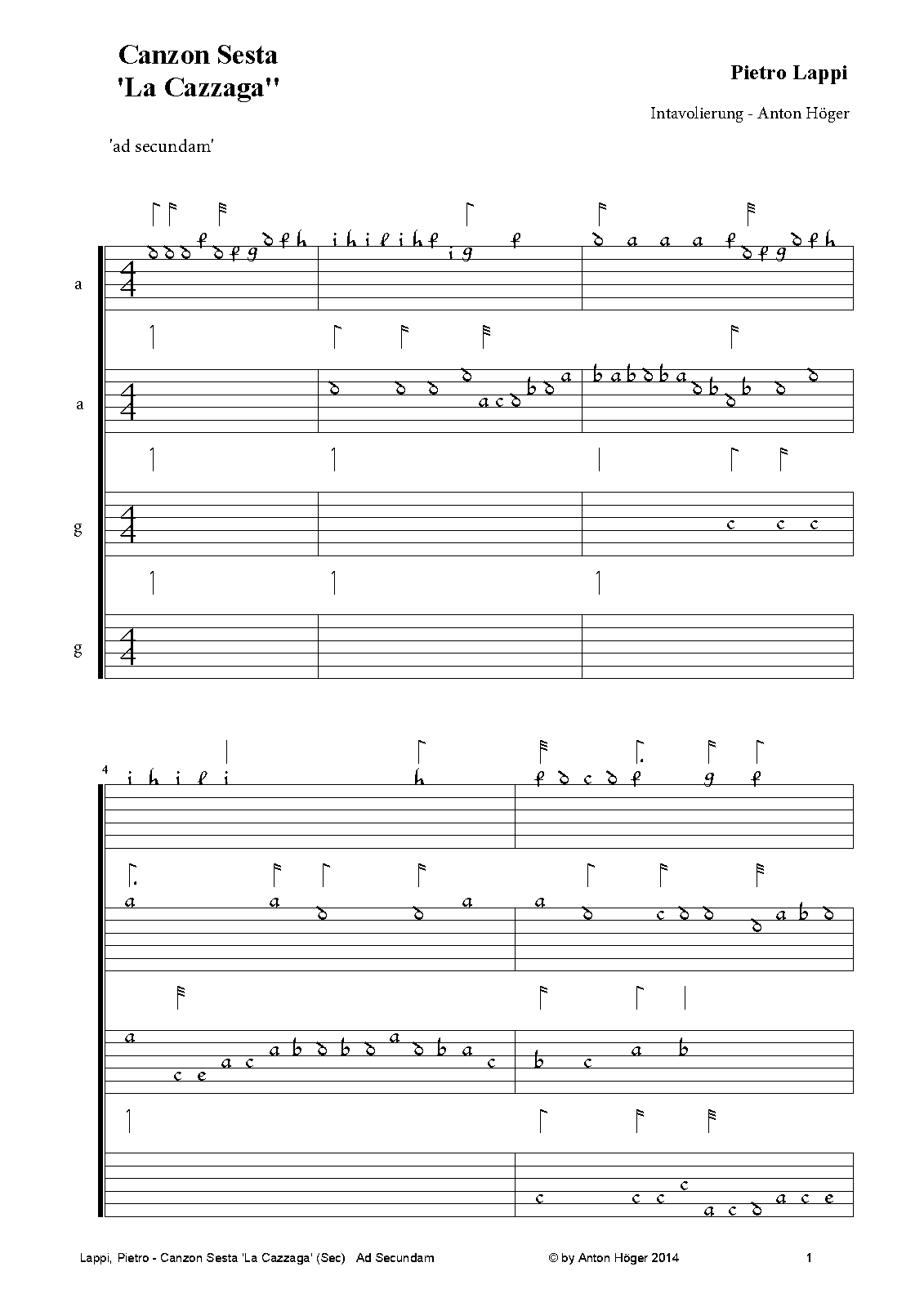 | Work Title | Canzon Sesta 'La Cazzaga' |