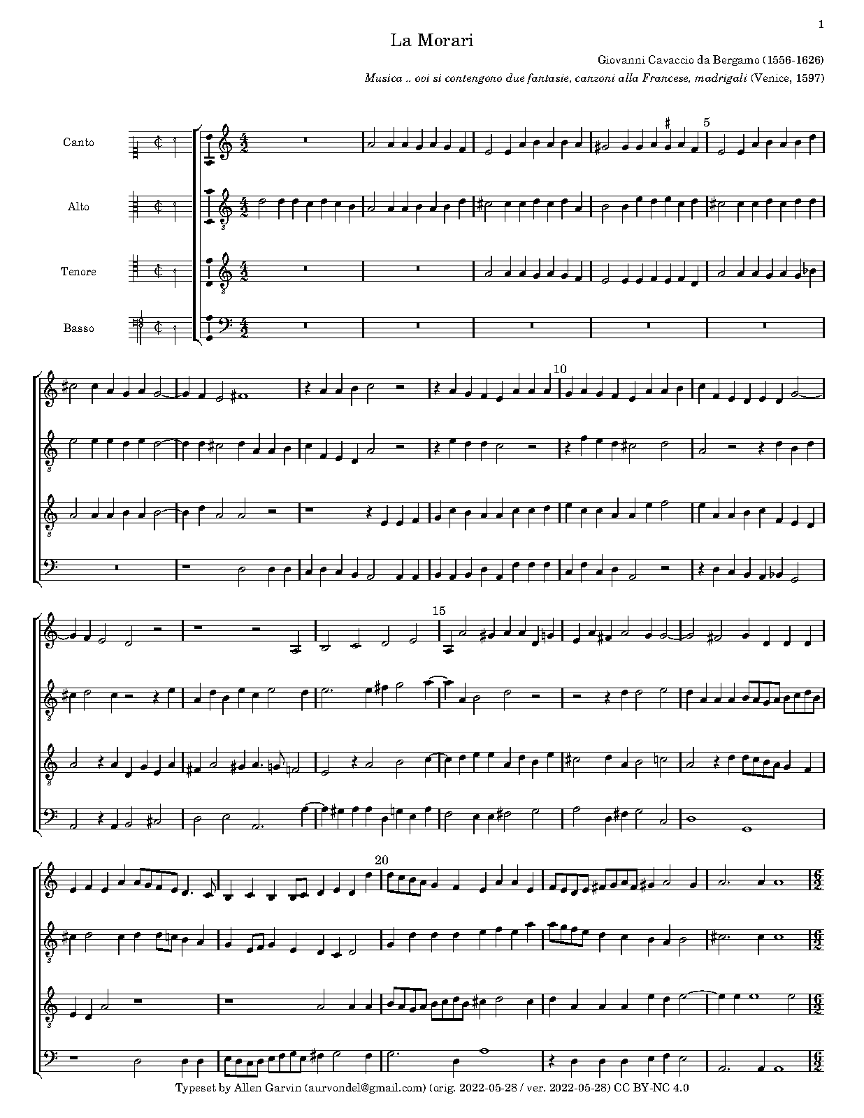 | First Publication | 1597 in Musica .. ovi si contengono due fantasie, canzoni alla Francese, madrigali (Venice) |