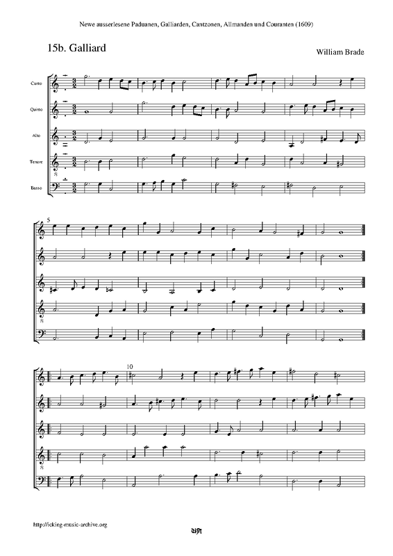 | First Publication | 1609 in Newe ausserlesene Paduanen, Galliarden, Cantzonen, Allmand und Couranten (No.14) |