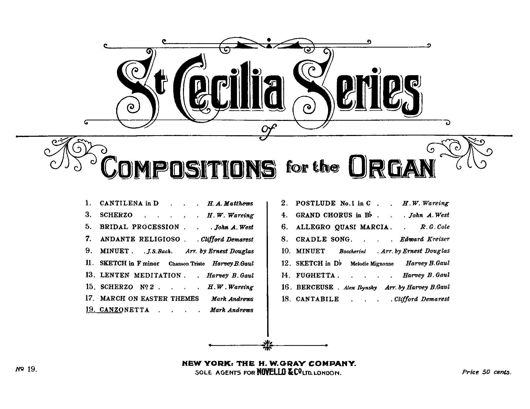 | Genre Categories | Canzonettas; For organ; Scores featuring the organ; For 1 player |