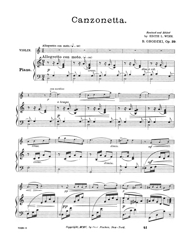 | Genre Categories | Canzonettas; For violin, piano; Scores featuring the violin; |