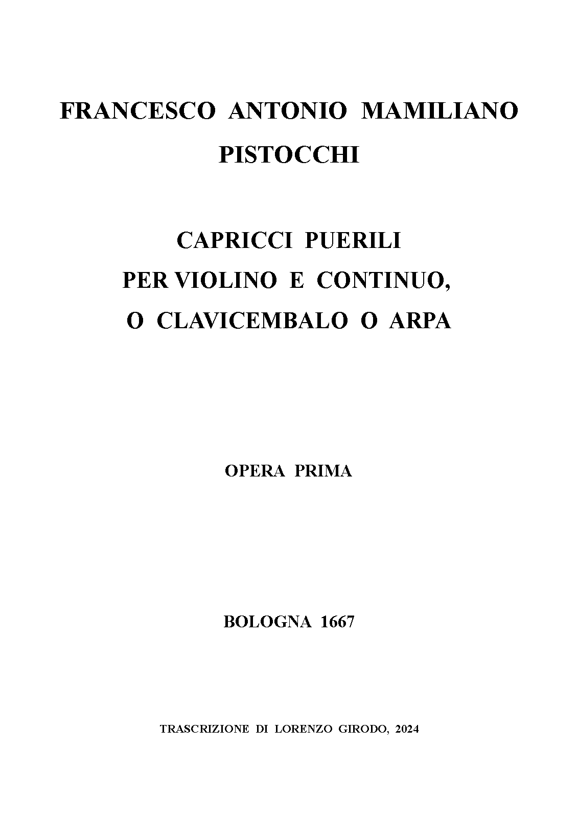 Capricci Puerili per Violino e Continuo, o Clavicembalo o Arpa