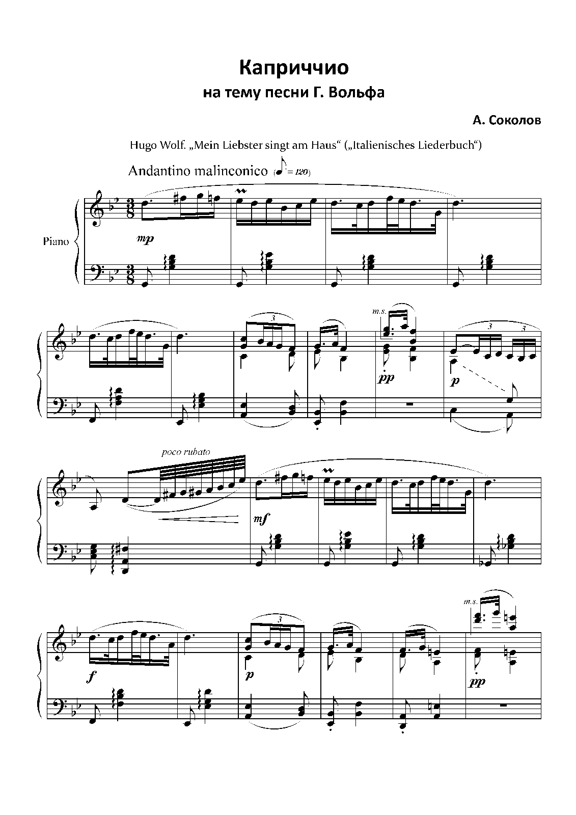 | Work Title | Capriccio on the Song by H. Wolf |