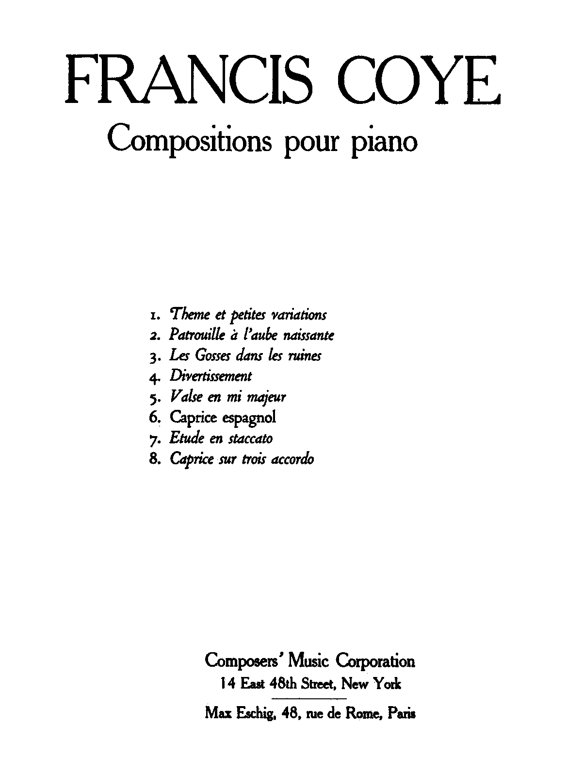 | Composer | Coye, Françis |