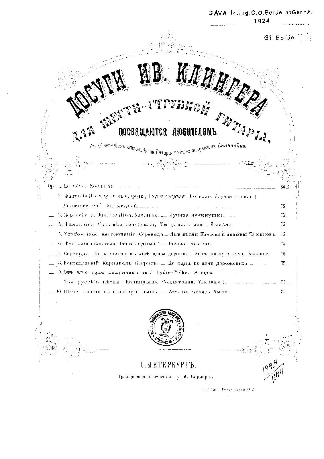 | Alternative. Title | Венециянский Карнавалъ, Капризъ. _ Не одна во поле дороженька. |
