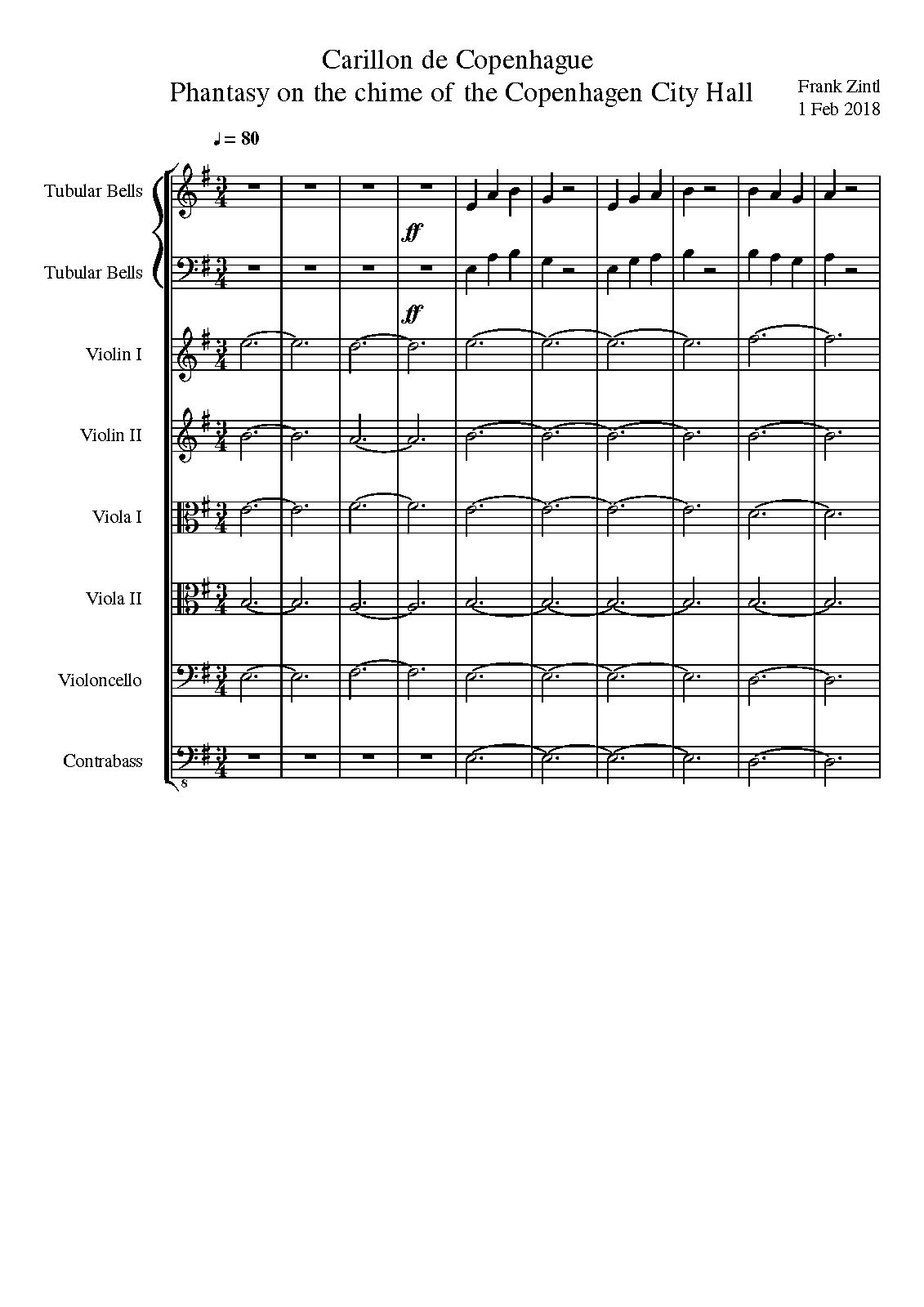 Phantasy on the 12 o' clock chime of the tower of the Copenhagen City Hall. For tubular bells and strings.