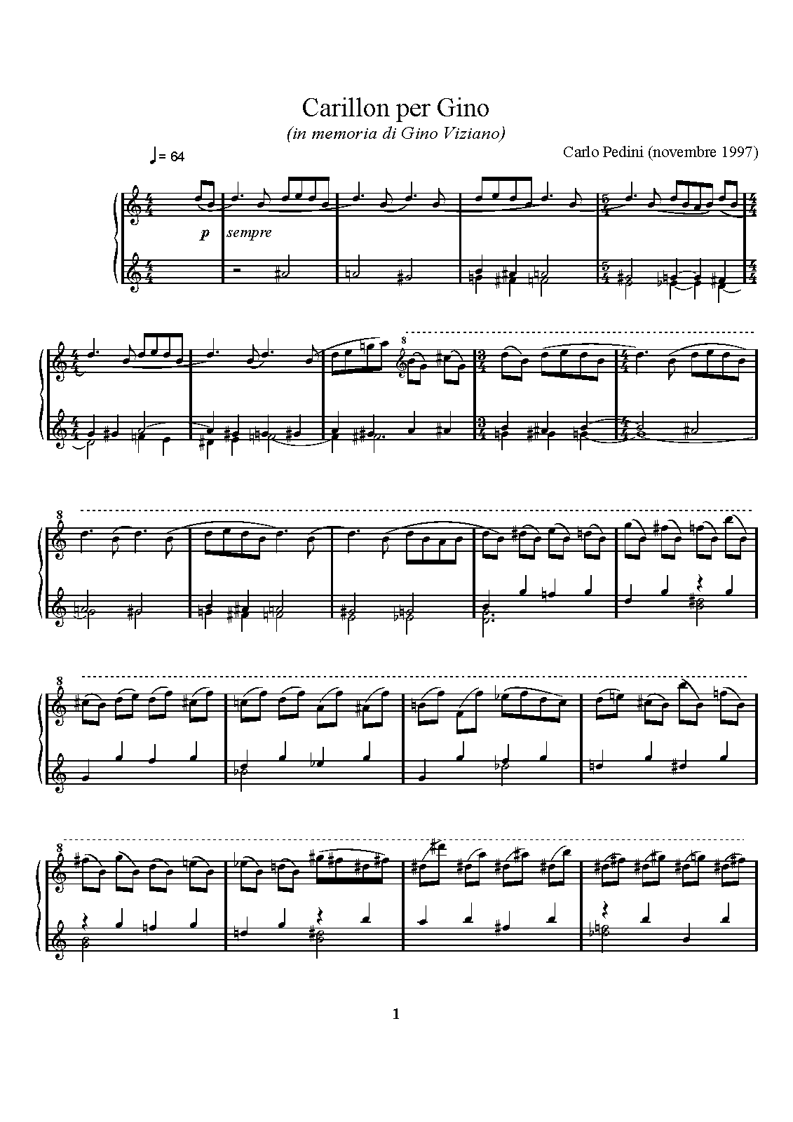 Short easy piece for piano written immediately after the news of the death of Gino Viziano, librettist of the Carlo Pedini's Operas "Rabarbaro, rabarbaro" and "Un giorno qualunque".