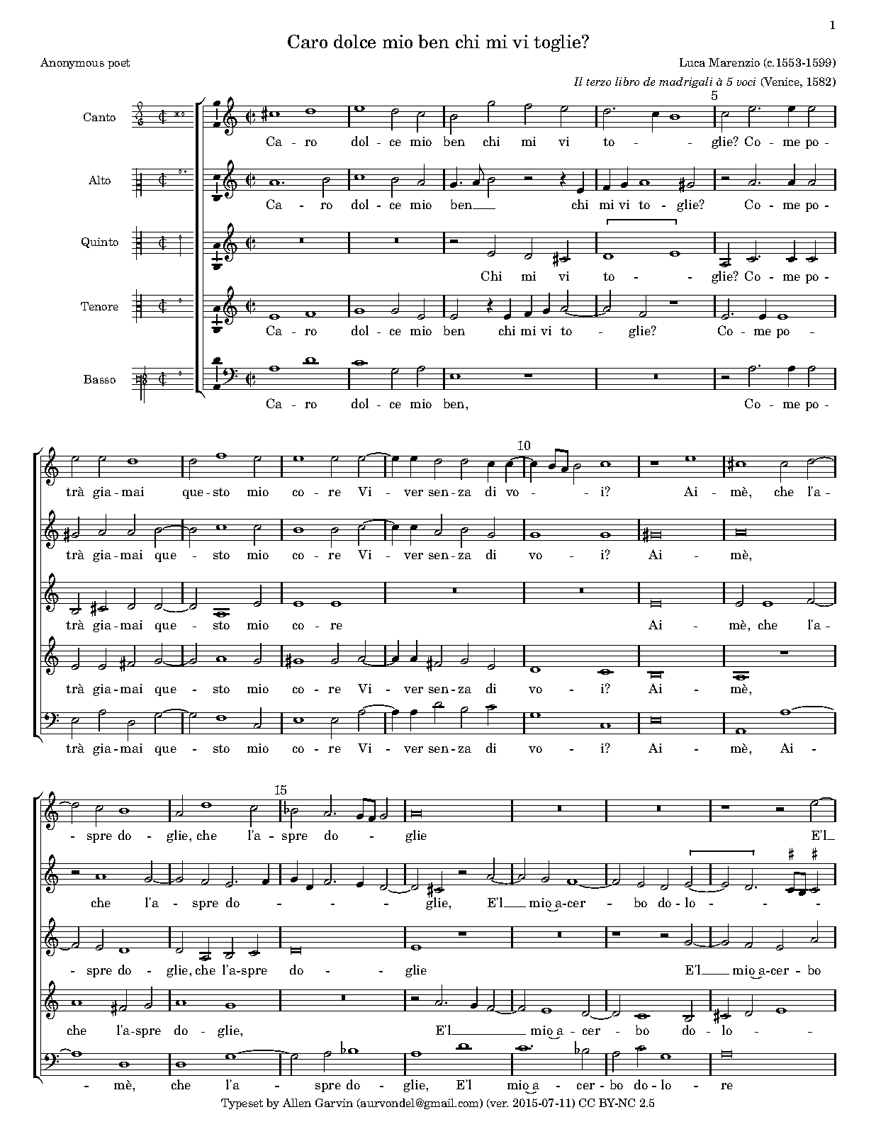 Caro dolce mio ben chi mi vi toglie (Marenzio, Luca)