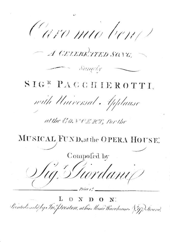 | Extra Information | While this song has often been attributed to Giuseppe Giordani, scholar John Glen Paton proposes that it is actually by Tommaso Giordani. The Nanki Library copy is bound in a volume of publications by Tommaso Giordani, which may reinforce this notion. It has also been attributed to Handel, and more recently to Ferdinando Bertoni (1725-1813). Additional info here |