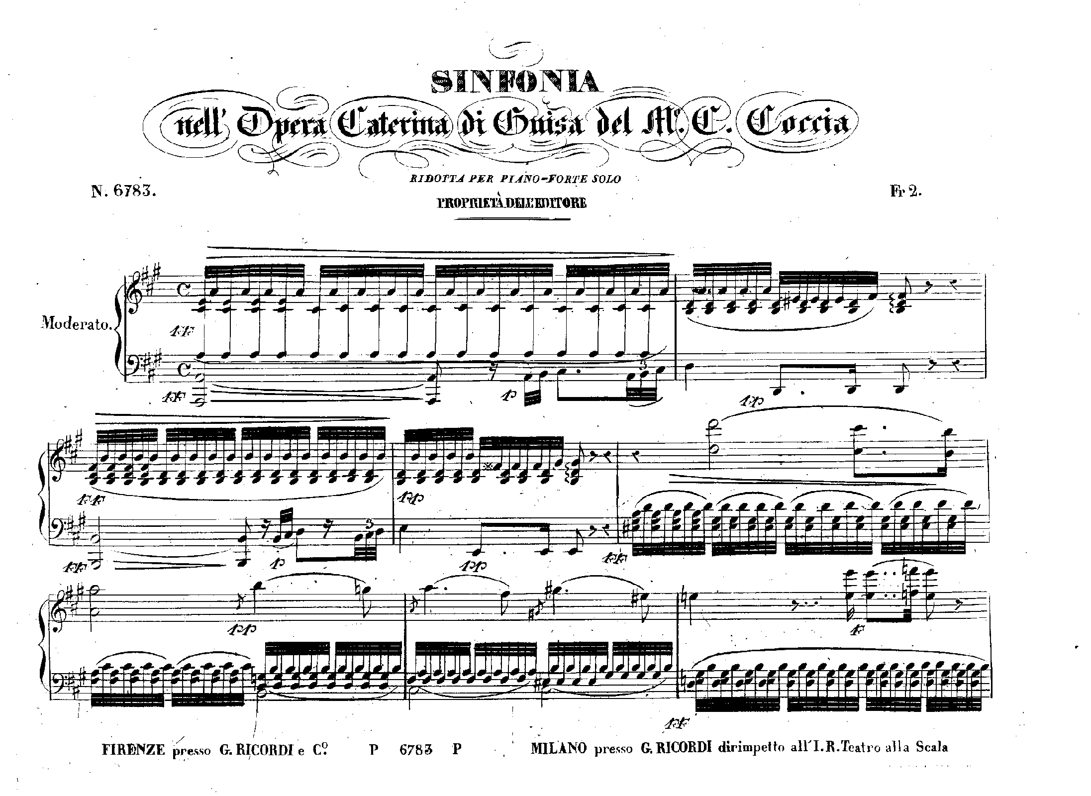 Publisher. Info. Milan: Ricordi, n.d.[1833]. Plate 6783.