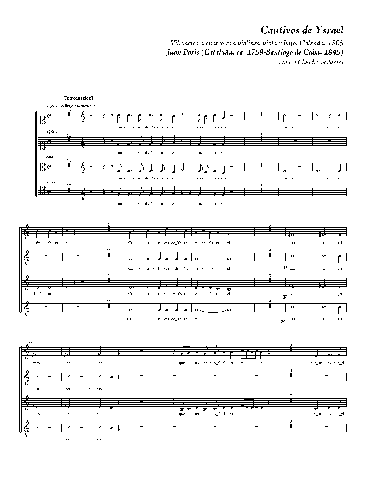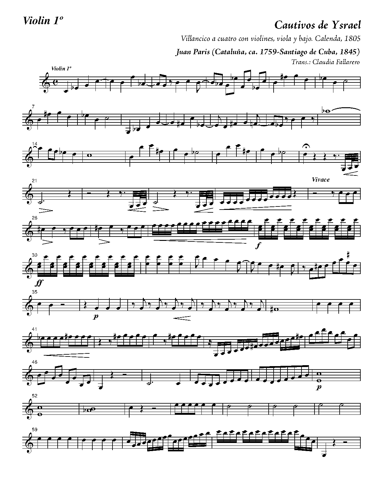 • FALLARERO, Claudia (2011) Juan Paris, maestro de capilla de la Catedral de Santiago de Cuba (1805-1845). Villancicos de Navidad. Libro I. Ed. Miriam Escudero and María Antonia Virgili. Ediciones Cidmuc, Oficina del Historiador de la Ciudad de La Habana, Universidad de Valladolid. ISBN 978-959-7216-02-5.