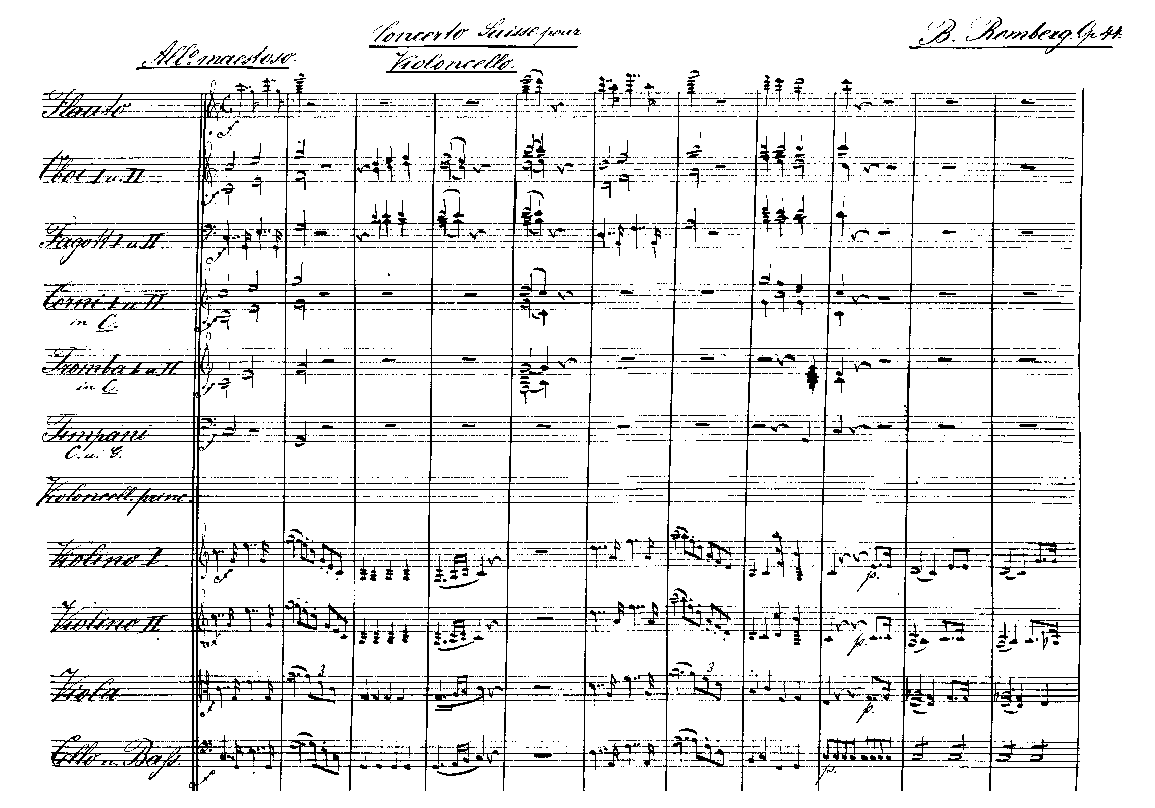 Solo: cello Orchestra: flute, 2 oboes, 2 bassoons + 2 horns, 2 trumpets + timpani + strings