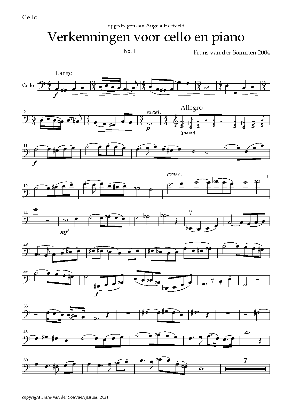 I wrote these 4 pieces in 2004 for Angela Heetveld, who lent me one of her Celli for my first true encounter with this instrument. This led to me taking Cello lessons, I thought for a few months, just to learn the basics and specific characteristics of the instrument. But I fell in love with the instrument and I am still learning. In 2020 I made a critical revision of the four parts of these CExplorations of the Cello in collaboration with my Celloteacher, Anton Satijn