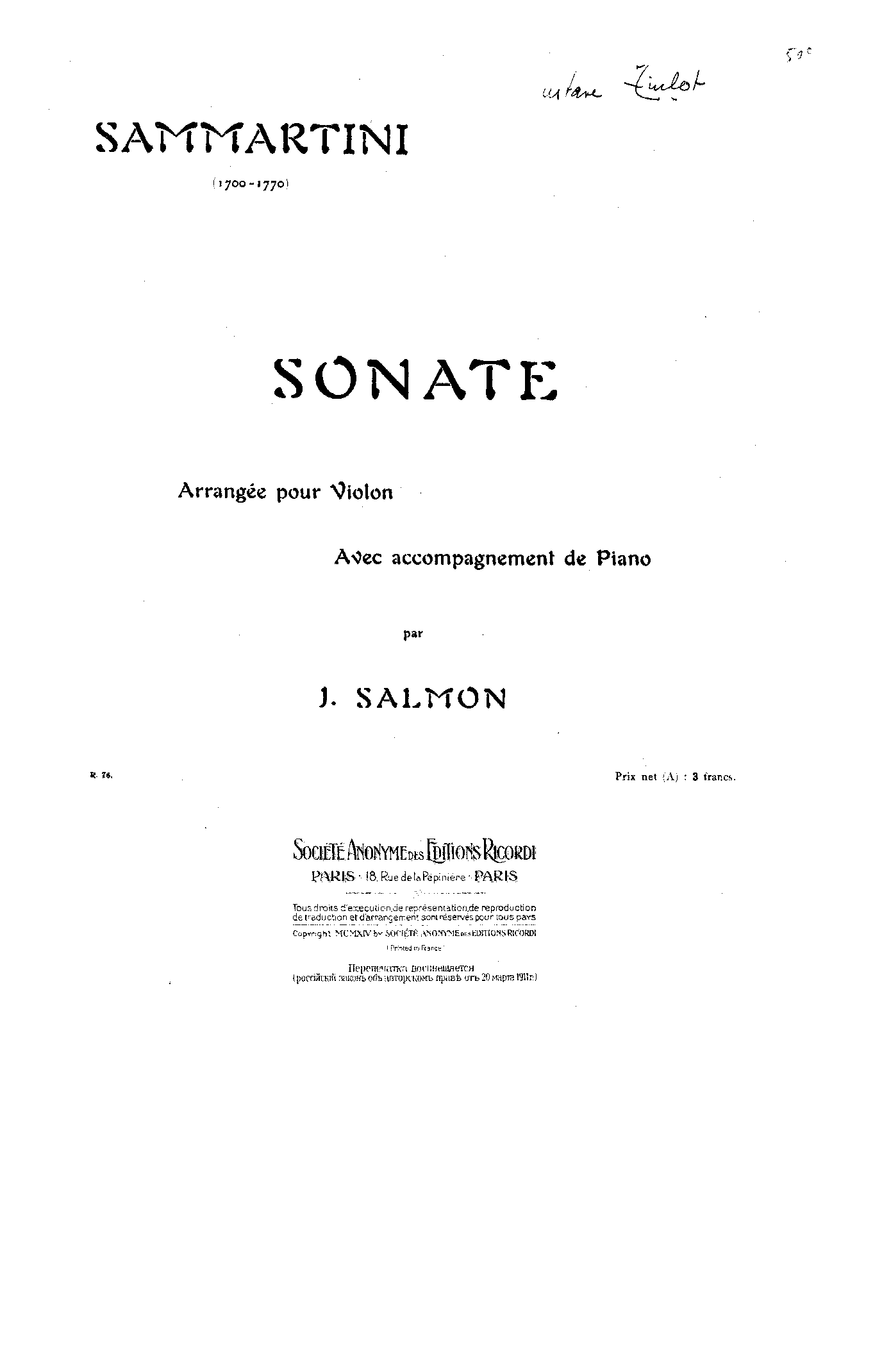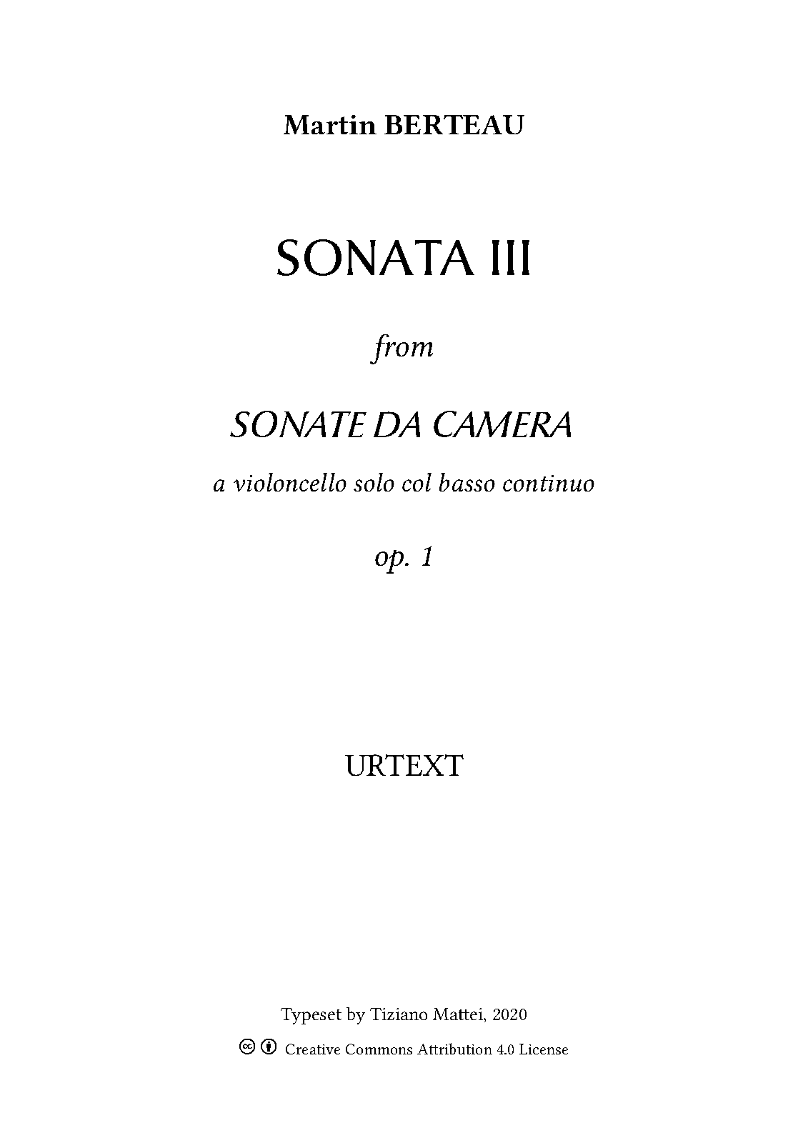 This Sonata is misattributed to Giovanni Battista Sammartini in many publications. However, it was first published by Berteau in his 6 Cello Sonatas, Op.1.